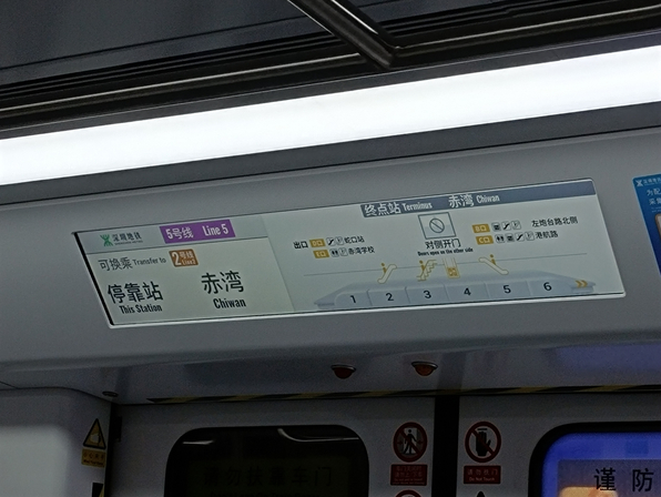 深圳地铁今天终于看到了一种清晰的标识屏,清晰的大字体停靠站点,车厢位置,电梯扶梯位置都有了,最关键的不再傻傻的“本侧门开”完全占据整个屏幕了。